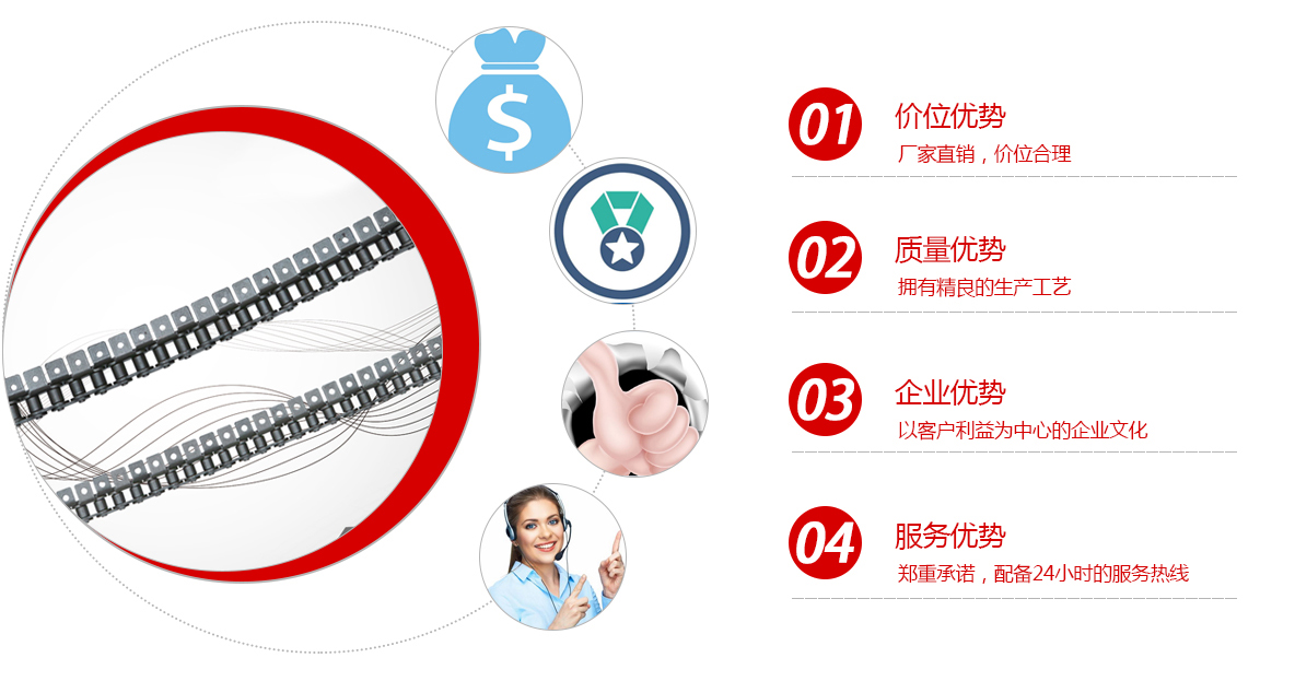 1、鏈條產(chǎn)品有各種不銹鋼、碳鋼輸送鏈條、雙節(jié)距輸送鏈條、空心銷(xiāo)軸鏈條、不銹鋼塑料平頂鏈、不銹鋼精密滾子鏈、特殊工礦輸送鏈、耐高溫輸送鏈條、非標(biāo)鏈條、彎板非標(biāo)鏈條、大節(jié)距輸送鏈條、各種鏈條用滾子(材質(zhì)碳鋼、不銹鋼)等。